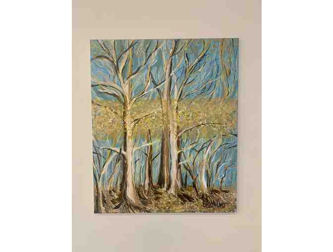 A beautiful acrylic painting on canvas titled "A Winter's Glow" by Lisa Miller. The canvas measures 18 x 24 inches.