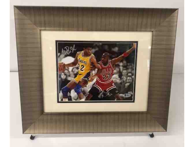 Magic Johnson Hand Signed Photograph vs Michael Jordan