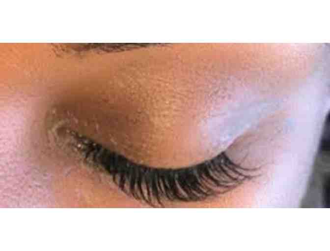 A lash extension beauty treatment that involves applying individual lashes onto each natural eyelash to add an amazing beautiful eye fashion look. This lash install will add extra length and volume.