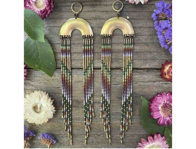 ONE of a KIND: Beautifully handmade  earrings, featuring glass seed beads and brass accents hanging from a brass hooks