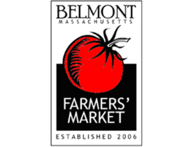 Five gift certificates worth $5 each ($25 total value) and a re-usable bag (value of $10). Gift Certificates can be used at any vendor's booth at the Belmont Farmers' Market.