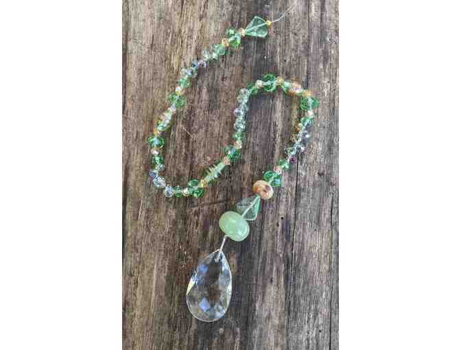 Measures 23 inches and comes with a suction cup decorative hook to hang in the window.