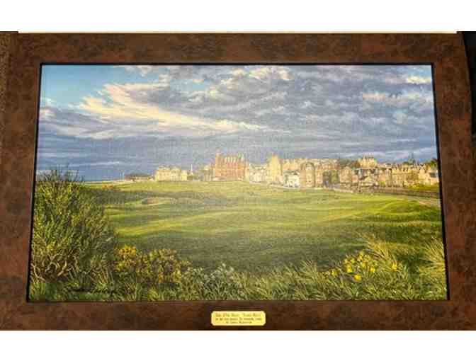 This is a beautiful framed canvas print of the 17th Hole of the St. Andrews Golf links in Scotland. The print measures 12"x20".