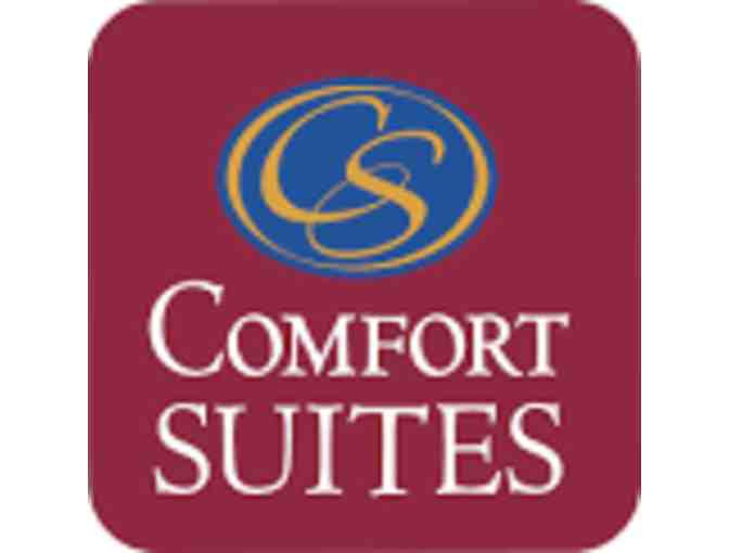 This  certificate is good for one night at the Comfort Suites in Moab, UT, between the dates of 23 March and 1 April 2022 or between 15 November 2022 and 31 January 2023. Up to 4 people are allowed in the room; the hotel is not pet friendly.