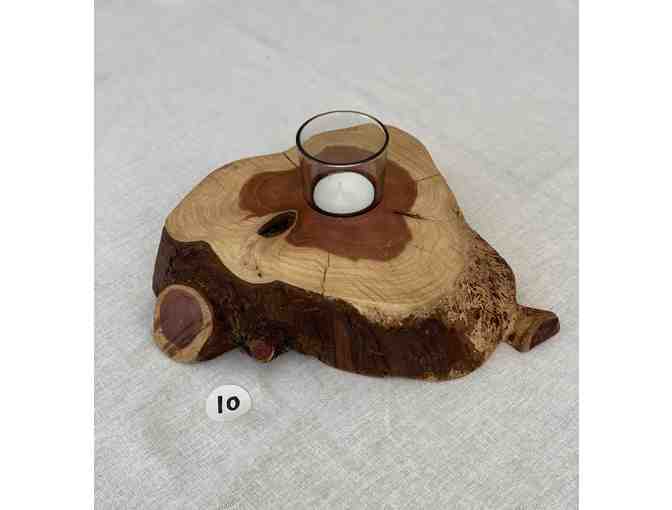 Beautiful handmade wood candleholder. This is the perfect centerpiece to add some rustic charm to your tablescape!
