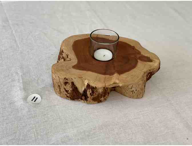 Beautiful handmade wood candleholder. This is the perfect centerpiece to add some rustic charm to your tablescape!