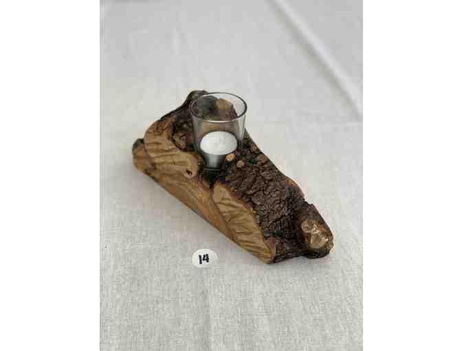 Beautiful handmade wood candleholder. This is the perfect centerpiece to add some rustic charm to your tablescape!