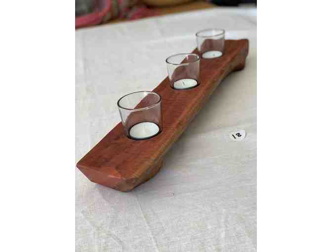 Beautiful handmade wood candleholder. This is the perfect centerpiece to add some rustic charm to your tablescape!