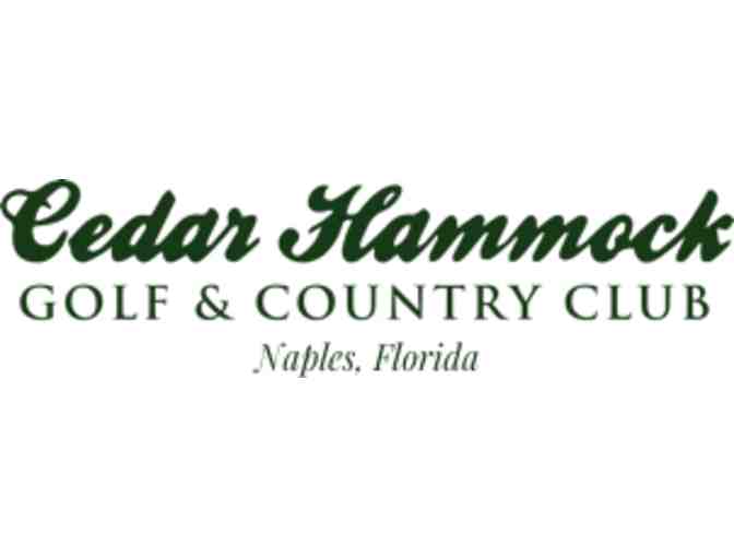 An 18-hole round of golf for four with carts at Cedar Hammock Golf and Country Club in Naples, FL. Foursome not allowed to be split in two. Golf appropriate attire required. Tee times available May 1 - October 31, 2022. Certificate expires October 31, 2021. Tee times can be made two days in advance by calling the golf shop at 239-793-1134. Visit: https://www.cedarhammockgolf.com/about
