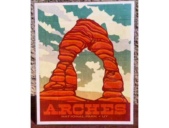 "Arches" is part of the National Parks series created by Tim "MIK" McAllister. Printed on heavyweight, archival-safe linen textured stock. Size: 8" X 10," including white border.