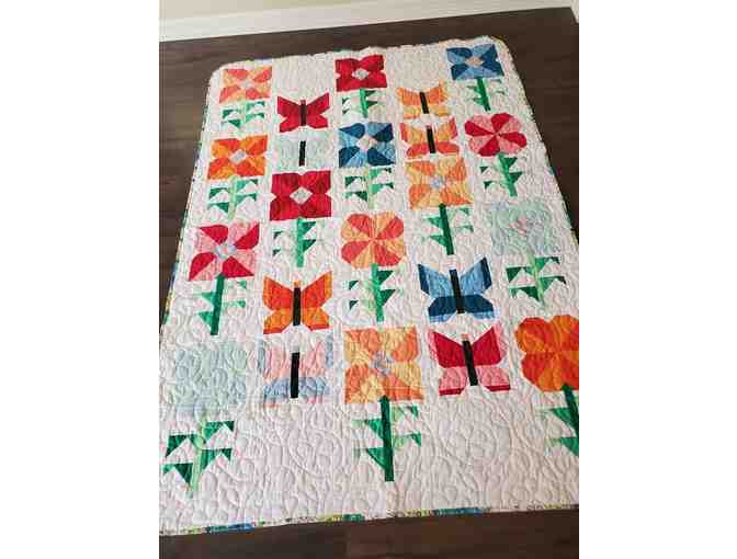 Who says solid fabrics are boring?! Using a variety of shade, the butterflies and flowers come to life. Pictured on queen size bed. This beauty really adds a lovely spring vibe to any room.
