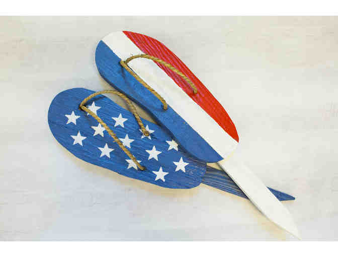 Hand-painted and Custom-made Wooden Flip-Flops (Red, White & Blue) - Value: $25