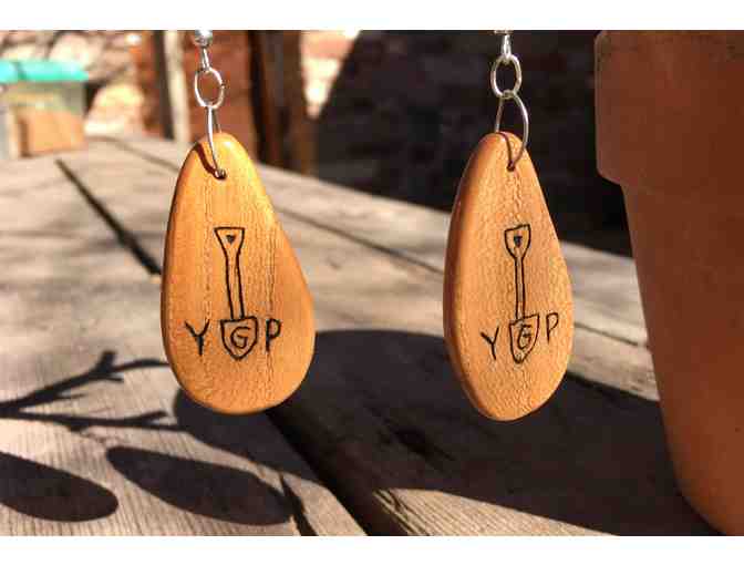 Celebrate the natural world and show off your love for the Youth Garden Project with these beautiful wooden earrings! This pair was handmade with wood from a peach tree that had completed its service to YGP.