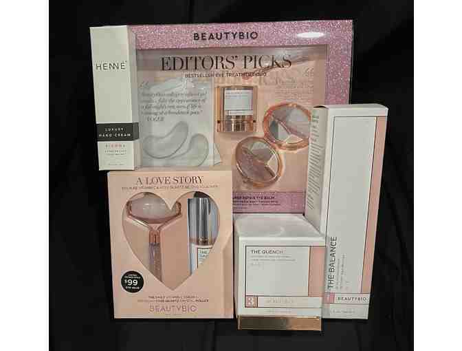 Bring the spa home with you and enjoy this package in the privacy of your own bathroom. This package includes Beauty Bio's collagen-infused gel masks, reviving eye balm, wrinkle-fighting eye cream, pH balanced cleanser, restoring cream, and a rose quartz crystal roller.
