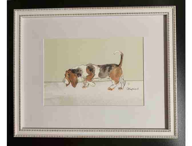 This is a framed graphic print of a Bassett Hound. It measures 15.5"x12.5" framed.