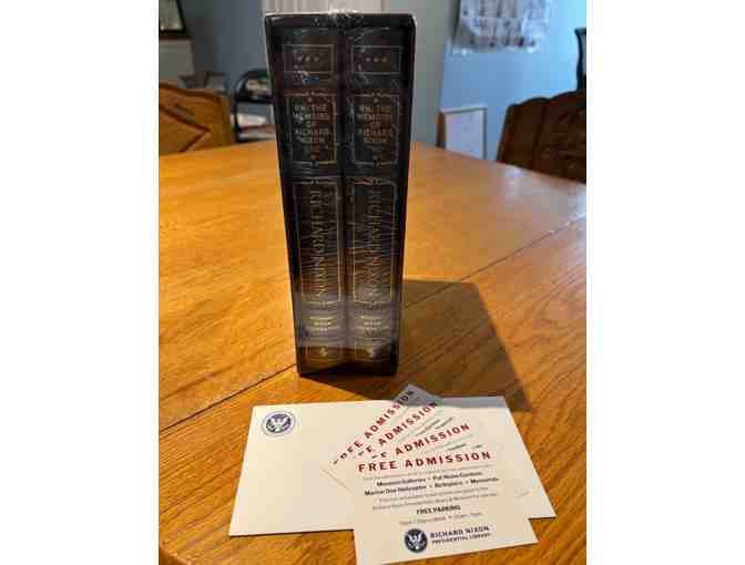 The former president recounts his life and political rises and falls, concentrating on the events, domestic and international, of his presidency and those leading up to his unprecedented resignation. This limited edition two volume set was published by the Richard Nixon Foundation to celebrate the President's legacy. This auction item also includes 4 free tickets to the Richard Nixon Presidential Library (California), opens 7 days a week 10pm- 5pm.
