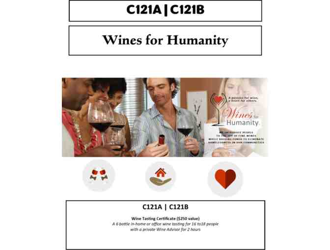 A 6 bottle in-home or office wine tasting for 16 to 18 people with a private Wine Advisor for 2 hours