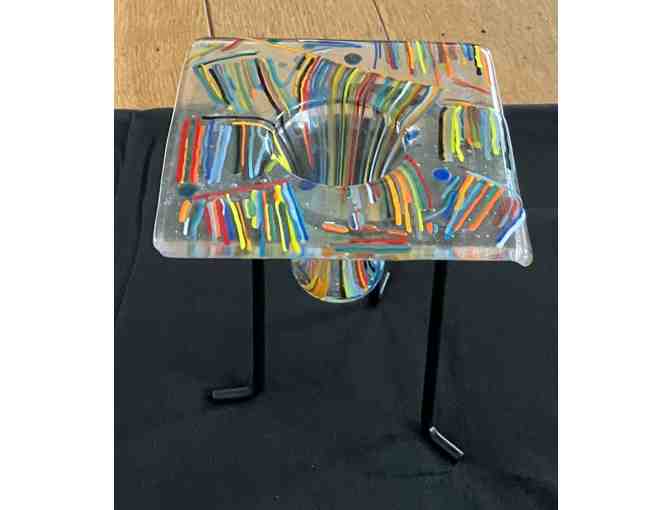 Looking for something beautiful, whimsical, and functional? This beautiful glass piece made by Bay Area artist and activist, Rocio Smith, can be used to hold a votive or a flower... or whatever the winning bidder envisions.