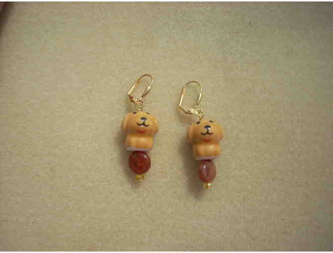 These cute yellow dogs are accented with a round Fire Agate bead and a yellow crystal for sparkle. The earrings are hypoallergenic.