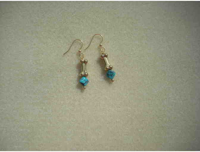 Turquoise with a gold dog bone earrings