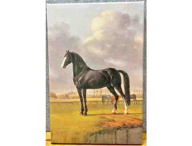 Small canvas art picture of a black stallion with white markings