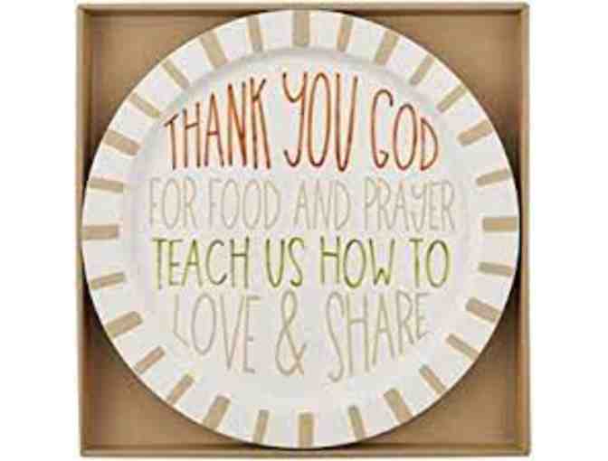 Hand-painted 12-1/2 inch stoneware platter features watercolor Thankful sentiment.