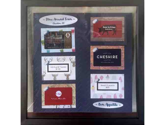 Dine your way around Cheshire with this amazing collection of gift cards featuring: Cheshire Coffeee, 122 Elm Street Tavern, Viron Rondo, Bone in Prime, Cheshire Pizza and Ale and Sweet Claude's. A taste of everything!