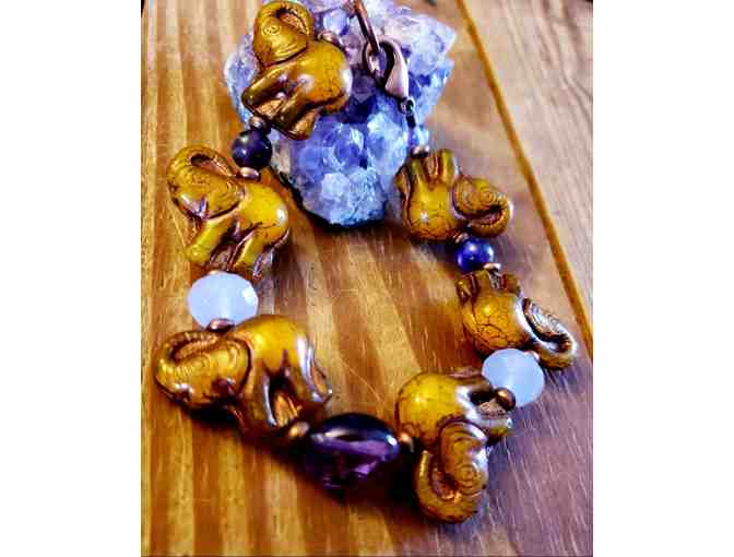 Bracelet of gold wash, pressed, Czech glass elephant beads