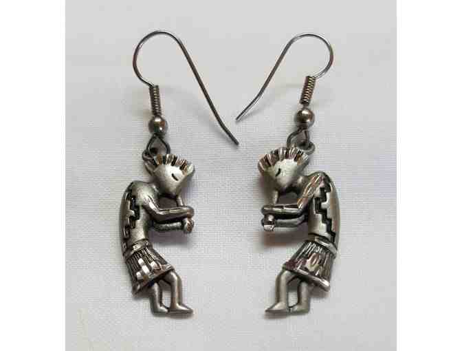 Kokopelli is a mythical character recognized by many Southwestern American native tribes. The hunch-backed flute player is a fertility deity, viewed as a mischievous trickster god and the spirit of music. These Kokopelli earrings are nicely detailed.