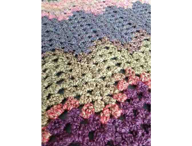 This cozy crochet throw is handmade with top quality premium washable yarn. It is amazingly soft and will keep you warm and cozy while you are on the couch watching TV or snuggling with your fur babies. Colors: Purple, pink, gray, and teal. Size: 41 inches wide x 63 inches long