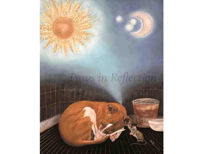 Limited Edition Giclee Print #10/10 by Dawn Leverington of Paws in Reflection 12x16, matted to fit a standard, 16x20 frame
