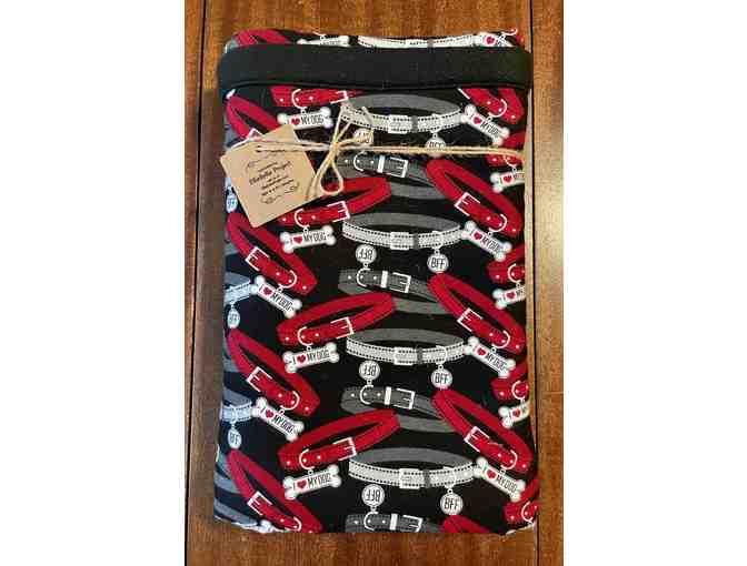This handcrafted EBP dog blanket features a fun flannel print on the front with a solid color fleece back. Measuring approximately 40"x44".