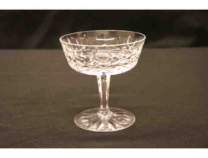 Five, vintage Waterford dessert cups with signed Lismore pattern. Take a step back in time and dine in the 1950s-60s with these beautiful cut crystal champagne/sherbet dessert cups! (Approx 4" H x 2-7/8" W)