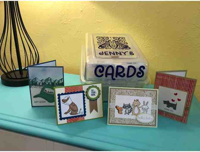 This set was handcrafted by a NMDR Volunteer. Box of 80 hand stamped cards with envelopes. Thank you, birthday, get well, baby, holidays & just a note. No 2 cards alike!