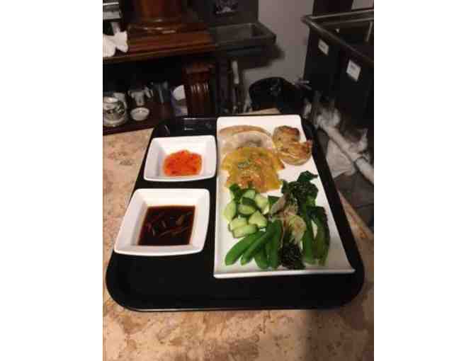 A unique opportunity. Your group of 10 will make Chinese dumplings from fillings made by Chris Ramsey based upon mutually agreed base ingredients. Can include fish, meat, poultry, and vegetables. Then we will cook the dumplings and eat them. Dumplings will be supplemented with some additional dim sum selections. Full vegetarian/vegan menu available. Not suitable for Kosher diet.