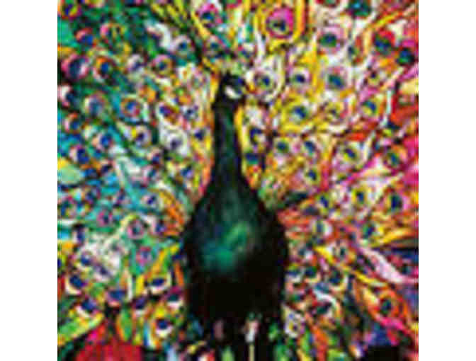 The high bidder wins this 29 x 20 inch jigsaw puzzle of Louis Comfort Tiffany's Displaying Peacock.