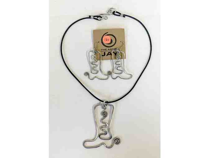 Cowboy Boot Matching set of handmade silver necklace and pair of earrings
