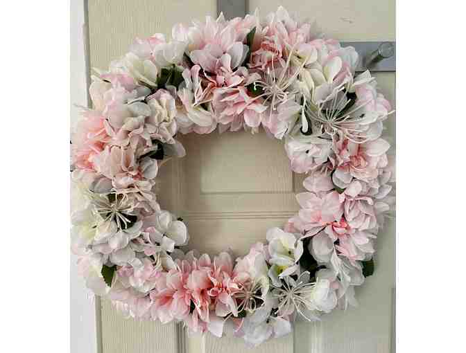 14" Decorative Flower Wreath - Artificial Light Pink and White Flowers