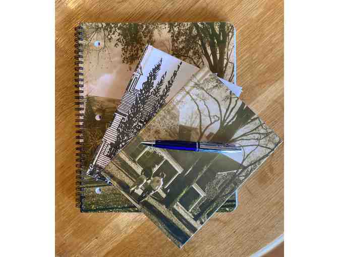 Be a trendsetter in class! These unique items are custom made with pictures from the Cheshire Academy Archive, you get 2 lined journals, one spiral notebook, a Cheshire Academy pen and a mousepad all in a CA reusable bag!
