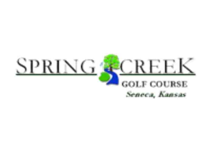 An 18-hole round of golf for four with carts at Spring Creek Golf Course in Seneca, Ks. Foursome allowed to be split in two. Golf appropriate attire required. Tee times available Monday-Sunday. Certificate expires December 31, 2023. Visit: https://www.springcreek-seneca.com/