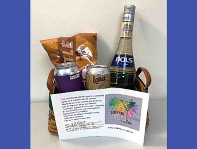 This basket is sure to provide you and nine of your friends with fun night out! This Longaberger basket, featuring 1 bottle of Bols Elderflower Liquor, 1 can of EvilTwin Brewing-Grape, 1 can of Lena Carmal Pecan Coffee Sout, and one bag of Turtle Chex Mix, is just the mix you need to prepare for - or unwind from - using your certificate for a Martini Sampling Party at Icons Martini Bar in Rock Island for up to 10 people!