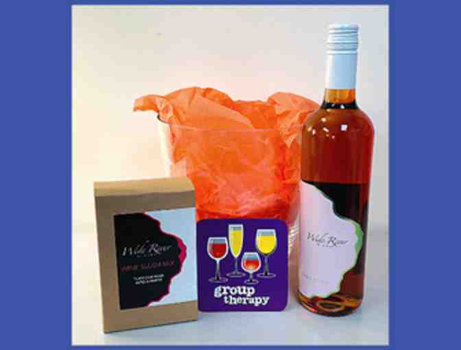 Calling all wine lovers! This package includes 1 bottle of Wide River Winery's "So Sue Me Sue", 1 wine slush mix, 1 coaster, and 1 glass ice bucket!