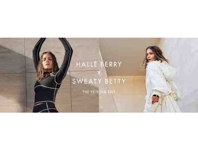 Lightweight quilted poncho with stand collar from Halle Berry’s second collection in collaboration with Sweaty Betty. Black SBHB outline print. Open sides with snap closure and zip front pocket. Shell: 100% recycled nylon; lining: 100% polyester; filling: 100% recycled duck down.