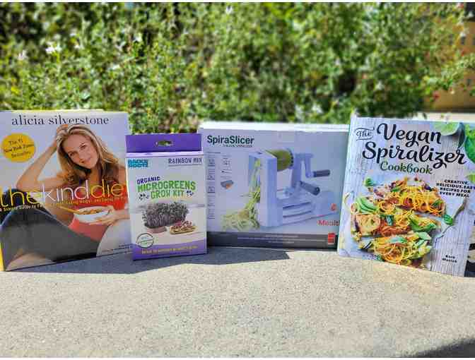 Spiral Slicer, Back to the Roots Miicrogreens Grow Kit, Vegan Spiralilzer cookbook, The Kind Diet Cookbook, by Alicia Silverstein (signed copy!)