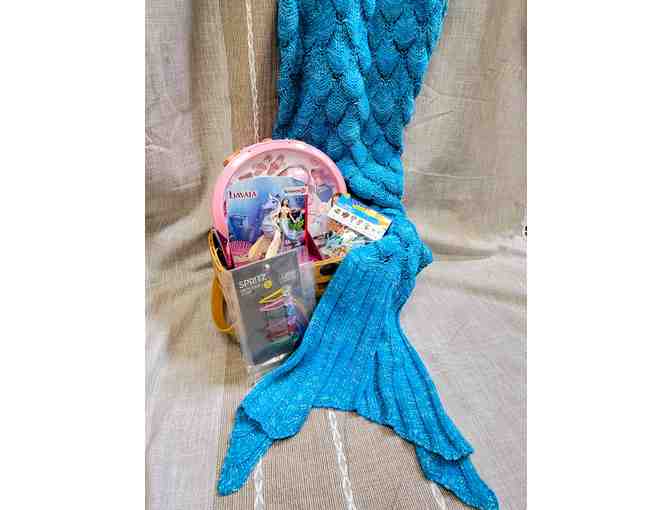 mermaid tail blanket, mermaid toy figurine, mermaid stickers