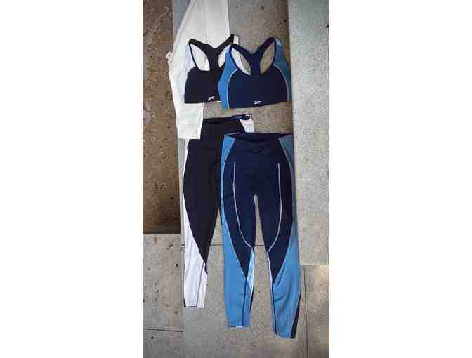 Reebok sports bras (2), Reebok leggings (2), Reebok sweatshirt. All size medium.
