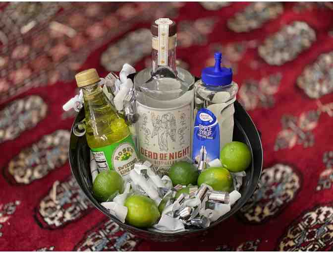 Everything you need for a Friday evening at home: Dead of Night Calicitra Vodka, simple syrup, Rose's lime and fresh limes.
