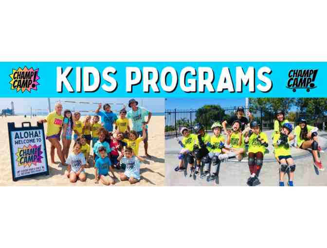 One half-day (9am-12:30pm) week of Champ Camp at our El Segundo Beach location at the end of Grand Ave. New customers only.