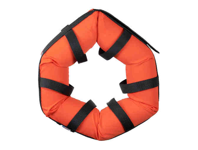 The HedzUPpets Watercollar is a personal flotation device (PFD) for dogs. Both a swim aid and a life preserver, the Watercollar will keep your dog's nose and ears safely above water, even if he's unconscious! The Watercollar attaches to your dog's own collar by straps, which allow the Watercollar to hang loosely away from his neck for long-wearing comfort, ease of movement and clear sight around water risks.