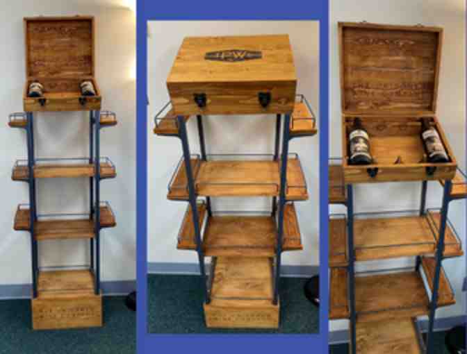 This wine rack holds all of your wine - at least 19 bottles depending on how you store it! Measuring 4'10" tall (5'10" with the top open), this sturdy wine rack is the perfect addition to hold and display your growing wine collection. Comes with two bottles of 19 Crimes Red Wine (2015 and a 2016 edition).